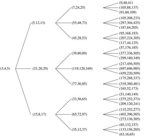 原始ピタゴラス数の三分木に第4層まで"Berggrens's tree with reordered path keys" ©no bias — ???? ??????????? ???????????? — keyn umvisndik preferentsn(18 July 2019)/Adapted/CC BY-SA 4.0 |