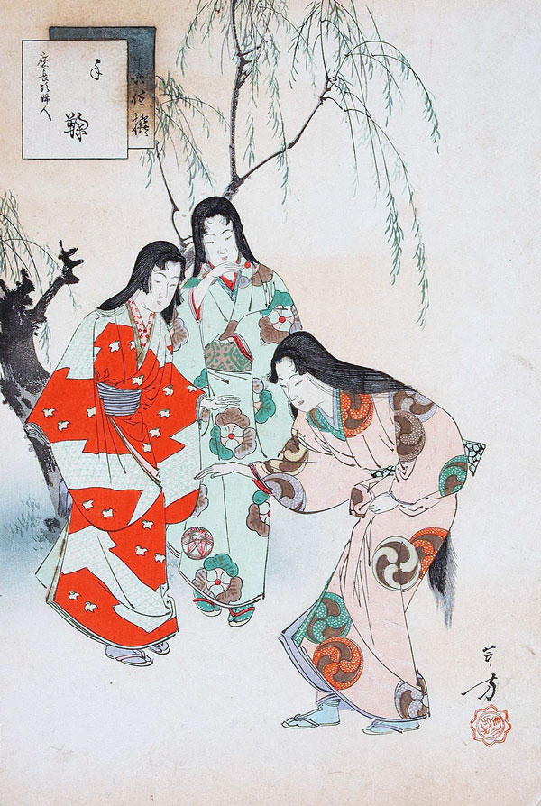 『三十六佳撰』「手毬 慶長頃婦人」(水野年方 1892/明治25年)
