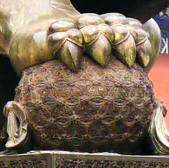 紫禁城『至高の調和の門』を守護する獅子の手元(明代に建設、清代1894年に再建)
