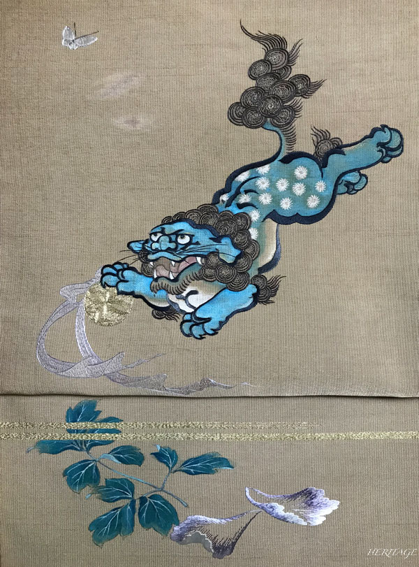 『獅子と蝶々』綴れ染め刺繍帯(HERITAGEコレクション 大正~昭和初期)